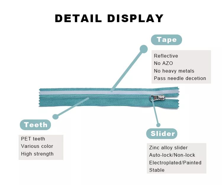 TRC, een Chinese fabrikant gespecialiseerd in ritsen, combineert geavanceerde weef- en coatingtechnologieën om nylon ritsen met reflecterende strips te produceren. Dit resulteert in een hoge reflectiviteit en uitzonderlijke duurzaamheid. De nylon tanden van deze reflecterende ritsen zorgen voor een soepele werking en een hoge treksterkte, waardoor betrouwbare prestaties worden gegarandeerd, zelfs bij veelvuldig gebruik.
