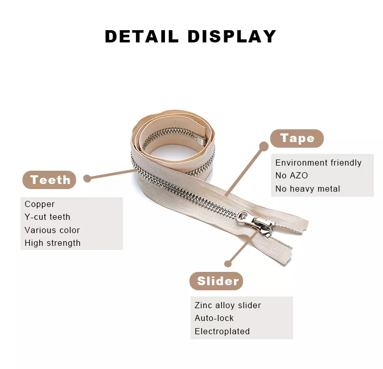 De gerecyclede metalen TRC-ritssluiting is voornamelijk gemaakt van recyclebare legeringen en polyestervezels, waardoor uitstekende duurzaamheid, gladheid en milieuverantwoordelijkheid met succes in balans zijn. Het product wordt strikt in overeenstemming met de internationale milieunormen vervaardigd, waardoor het verbruik van hulpbronnen en de ecologische voetafdruk aanzienlijk worden verminderd, waardoor het een betrouwbare garantie is voor het opbouwen van een groene toeleveringsketen en het implementeren van een duurzame ontwikkelingsstrategie.